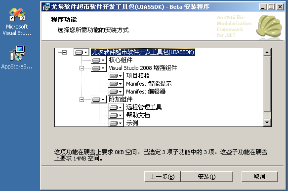 开发者经过认证后可以从应用商店网站下载到开发者工具包,该工具包文件名为“AppStoreSDK.msi”。目前DevSDK环境要求为:Visual Studio 2008SP1以上,支持Visual Studio 2010,需要安装有SQL Server Compact Edition 3.5。我们正在努力使其支持VS2005和VS2008。运行安装包结果如下: