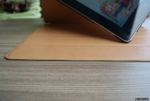 正面就像原厂的smart cover设计,让习惯放在桌面使用的我也能操作方便