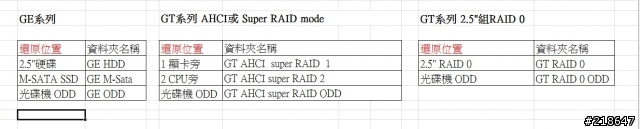GT系列稍微复杂一点,Super RAID和AHCI使用相同的档案,如果有使用两个2.5吋的组RAID 0的,则档案是不同的