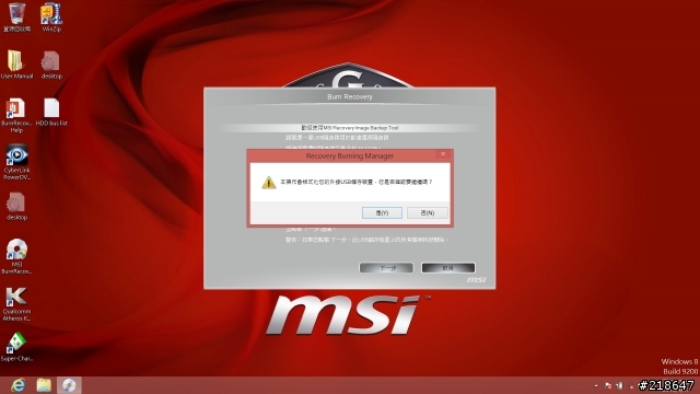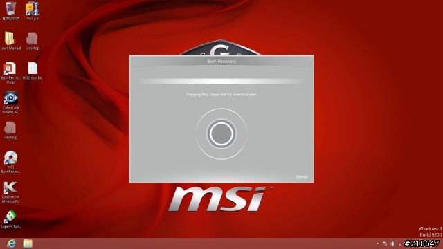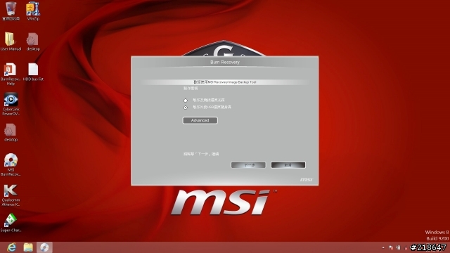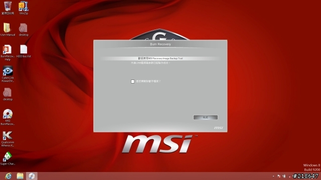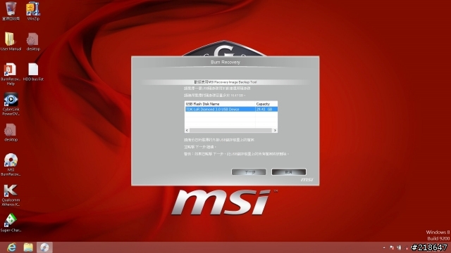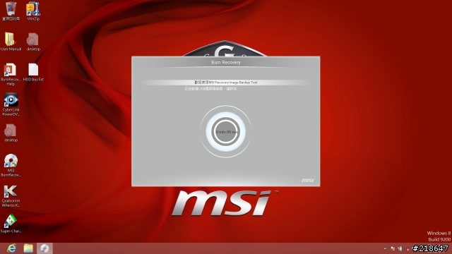 4.将准备的随身碟接到NB上,并点选执行桌面上的MSI BurnRecovery