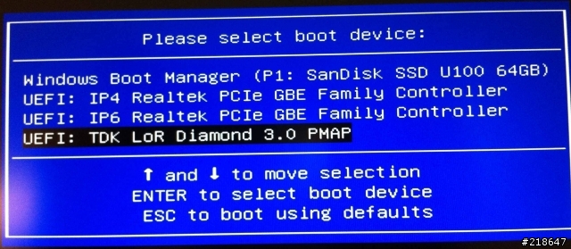 11.接上USB随身碟并开机,当按下电源建后就赶快按下F11键会出现快速开机选单,选择USB随身碟后按下Enter键进行开机