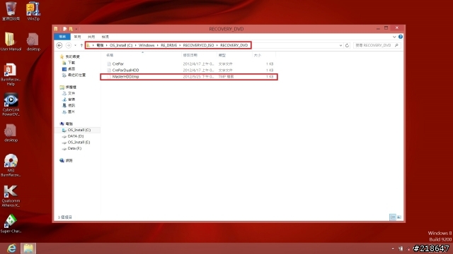 硬体安装或是GT系列的RAID设定部分请恕小弟偷懒就直接先略过不提,在硬体安装之前,请先确认好您希望将系统还原至哪一个位置的硬碟或SSD中,再将小弟提供的对应档案放在下列路径中后,直接执行MSI Burn Recovery进行还原装置的制作,制作完成后就关机 >> 硬碟或SSD安装 >> 使用制作好的还原装置进行还原即可,这样应该够简单了吧!!