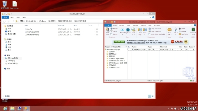 Windows 8下的Burn Recovery新增了随身碟的备份还原方式,如果备份制作在随身碟上那使用上就更加的方便,随时可以更换想要还原的位置,只要将对应的MasterHDD.tmp档,复制到制作好的随身碟里RECOVERY_DVD资料夹中即可