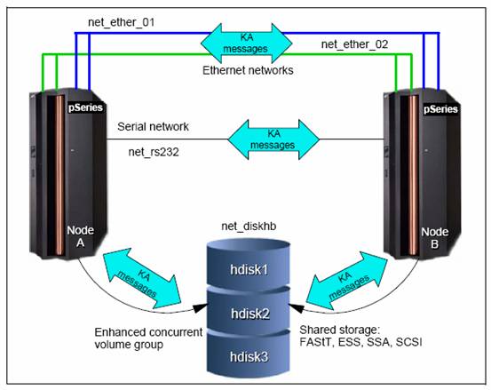 配置 HACMP 的过程中,除了 TCP/IP 网络之外,您也可以在其它形式的网络上,如串行网络和磁盘总线上配置心跳网络。