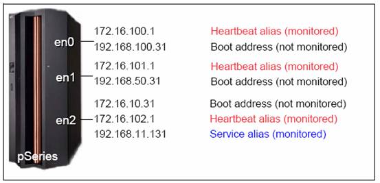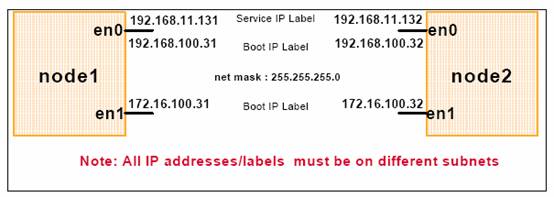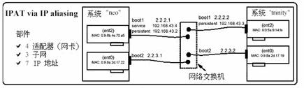 缺点:占用 IP 地址,不能避免由于 TCP/IP 的软件问题导致 HACMP 崩溃,系统不可用。