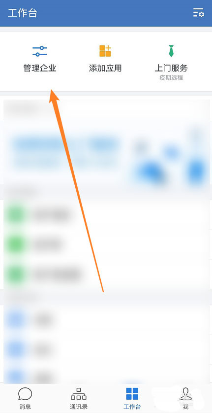 3、在工作台中,点击【管理企业】。