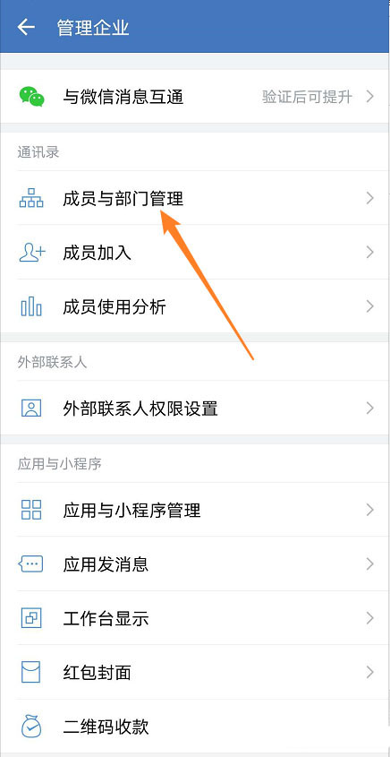 4、在界面中,点击【成员与部门管理】。