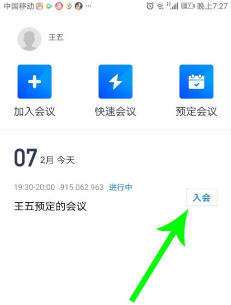 5、到开会时间后,会议发起者打开腾讯会议首页点击入会即可打开开会界面。