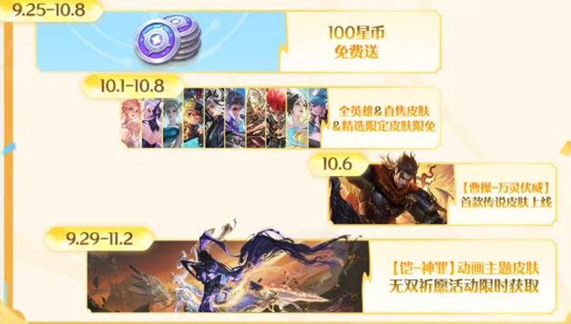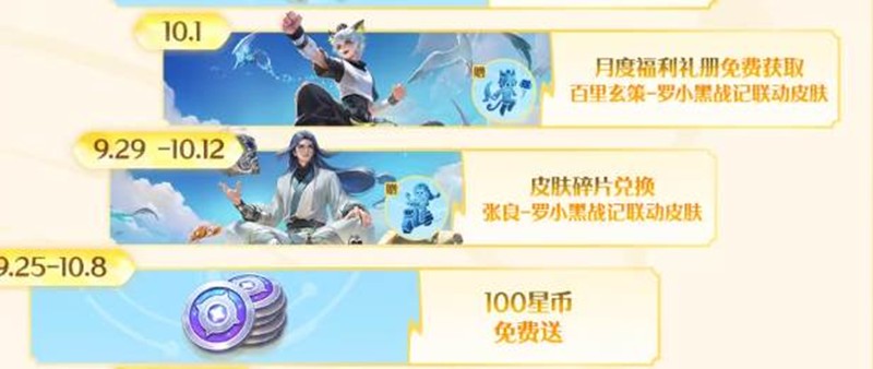 100星币免费送:9月25日至10月8日,登录游戏即可领取100星币,用于兑换更多游戏内物品。