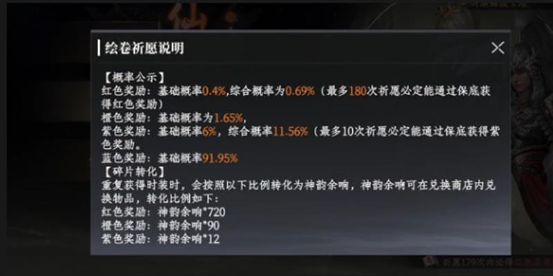 关于抽卡概率,大奉打更人的卡池设有明确的星级掉落机制。红色品质奖励的单抽出货率为0.4%,综合获取概率为0.9%,每180次祈愿必定获得一次红色品质物品。橙色品质基础概率为1.65%,紫色为6%,而蓝色及以下则占91.95%。值得注意的是,紫色品质每十连必出一件,红色则有180抽保底机制。合理规划抽卡节奏,能有效提升获取高价值物品的稳定性。
