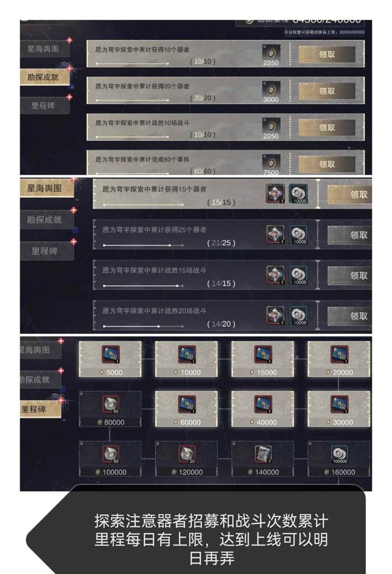 ④累计成就奖励:注意器者和战斗次数