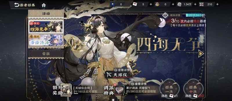 物华弥新游戏中有着众多角色,他们被称为“器者”,分为轻锐、远击、宿卫、构术、战略五个职业,特出、优异、新生三种稀有度。作为一个限定,同时作为召唤队核心,天球仪强度如何,话不多说,少爷,小姐,这是您的攻略。