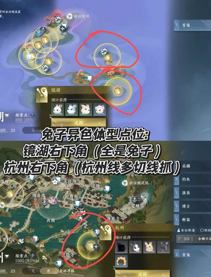 只有鹿,刷新很快且汴京线多,可以一直切线抓