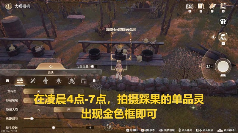接着,在凌晨4点-7点拍摄踩桶的单品灵,出现金色框框即可;