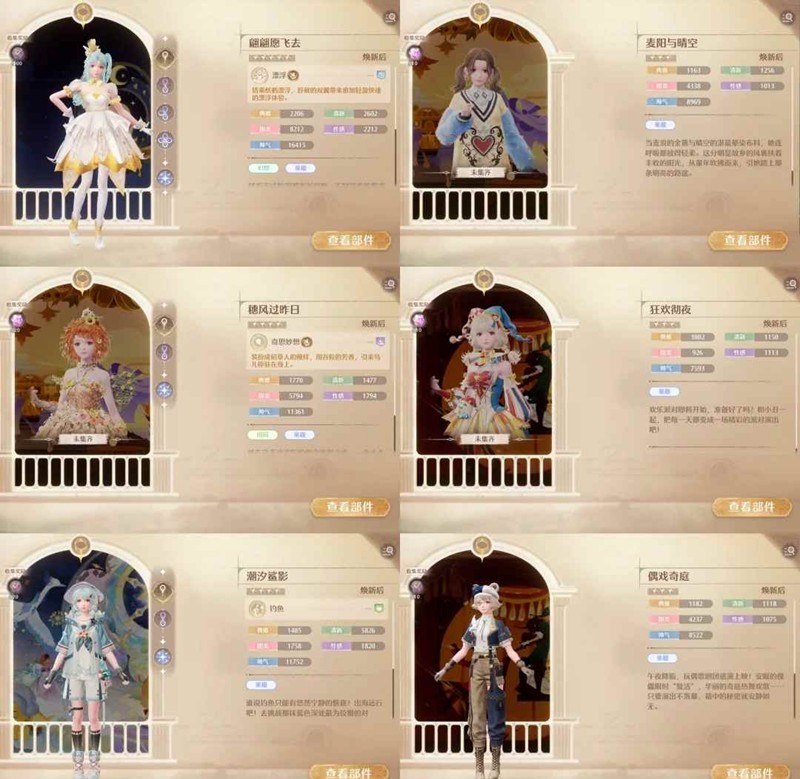 符合条件的套装有【翩翩愿飞去】【穗风过昨日】【狂欢彻夜】【偶戏奇庭】【潮汐鲨影】【麦浪与晴空】