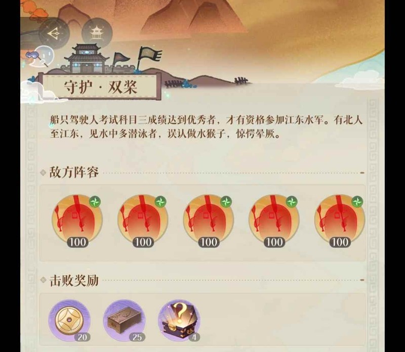 如鸢《三国志·魂魂版》活动已上线!大江东去,浪淘尽,千古风流魂魂。故垒西边,人道是,王府鸢房书房。绣衣食堂,白菜萝卜,天天都健康。广陵绣衣,一时多少豪杰。那么这个周年活动魂魂守护双桨应该怎么打过呢?小编为你准备了一份攻略,一起来看看吧~