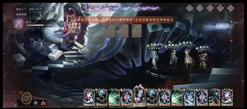 最先开始试了梅兰妮,发现不好打,后面换了圈凹过了……也没那么简单…大概是在第4回合开大,后面是5/6回合自动开大,以此类推…可以对照对面的压力值看看进度是否正常(压力40%对应打了40层,压力90%的时候应该才70-80,野树莓保住全队一次后,再开大差不多就结束了,建议诺谛卡满增幅满共鸣,我的诺谛卡是0塑共12心相没增幅)