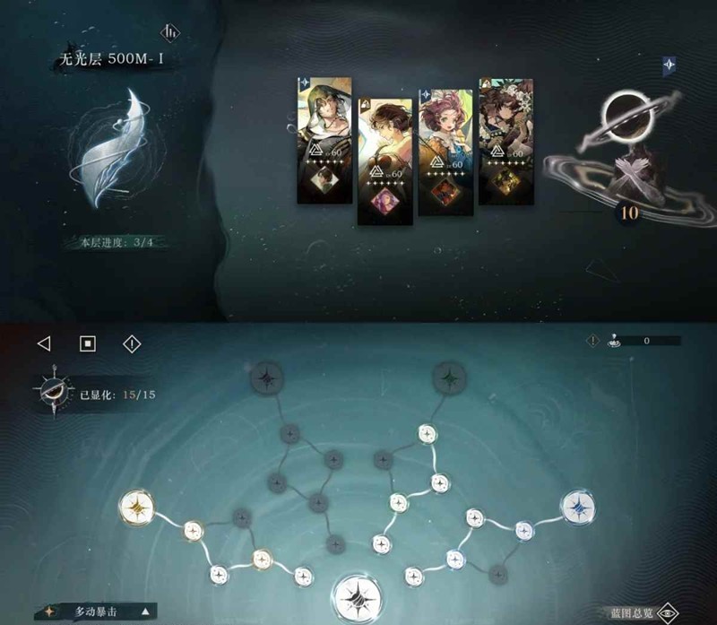 手法:回合开始目标对准乌鲁木齐,在2,3回合定打成小火亩(也就是2回合内打小)打可燃点时一定点艾吉奥反击牌,是靠这个输出,同时记得回血。后面就是轮回来打,多的20回合内是能打死的,打不死可能是角色输出不够,再升共鸣心相之类