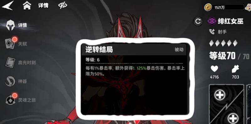 该技能释放后可使绯红女巫进入“重写现实”状态,持续时间为10秒。在此期间,她将获得额外暴击率加成,并且不受暴击率上限的限制,突破原本50%的阈值束缚。这一特性极大增强了她在短时间内的输出窗口,配合被动技能可迅速叠加伤害倍率。该技能适合在敌方关键单位出现或己方增益状态齐备时使用,以最大化其爆发潜力。