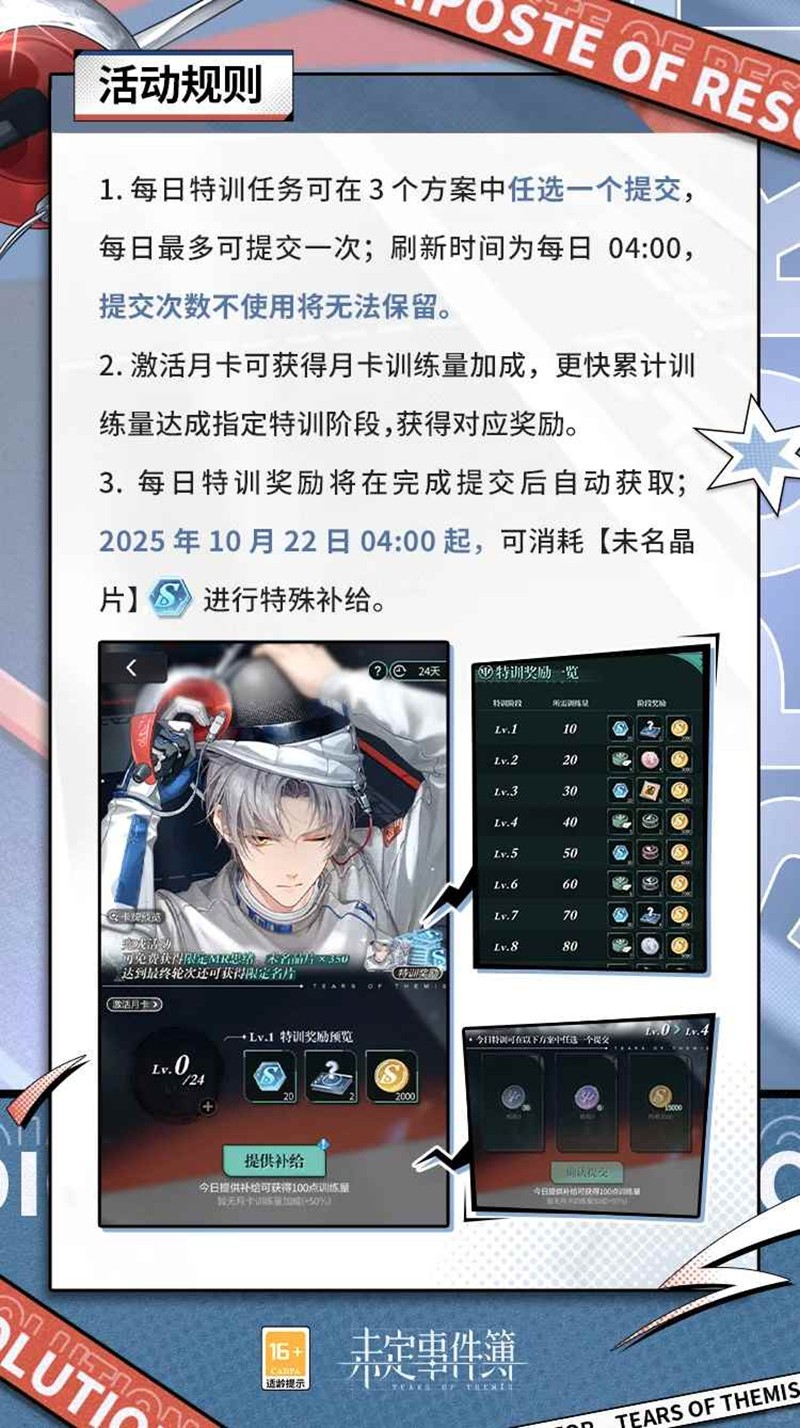 3.每日特训奖励将在完成提交后自动获取;2025年10月22日04:00起,可消耗【未名晶片】进行特殊补给。