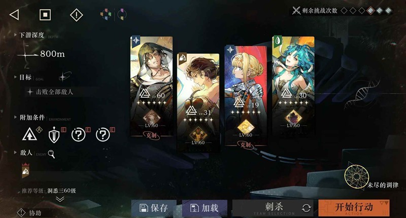 压力值八十左右开花环大招上增伤,boss要释放压力大招的回合前留好艾吉奥三阶攻击,留一只血比较少的小怪,到了压力大招回合卡姐上致命伤并清剩一只小怪,用嘶嘶打boss让艾吉奥血量低于三十吃到潜行暗杀加伤,最后三阶卡一下四五百万