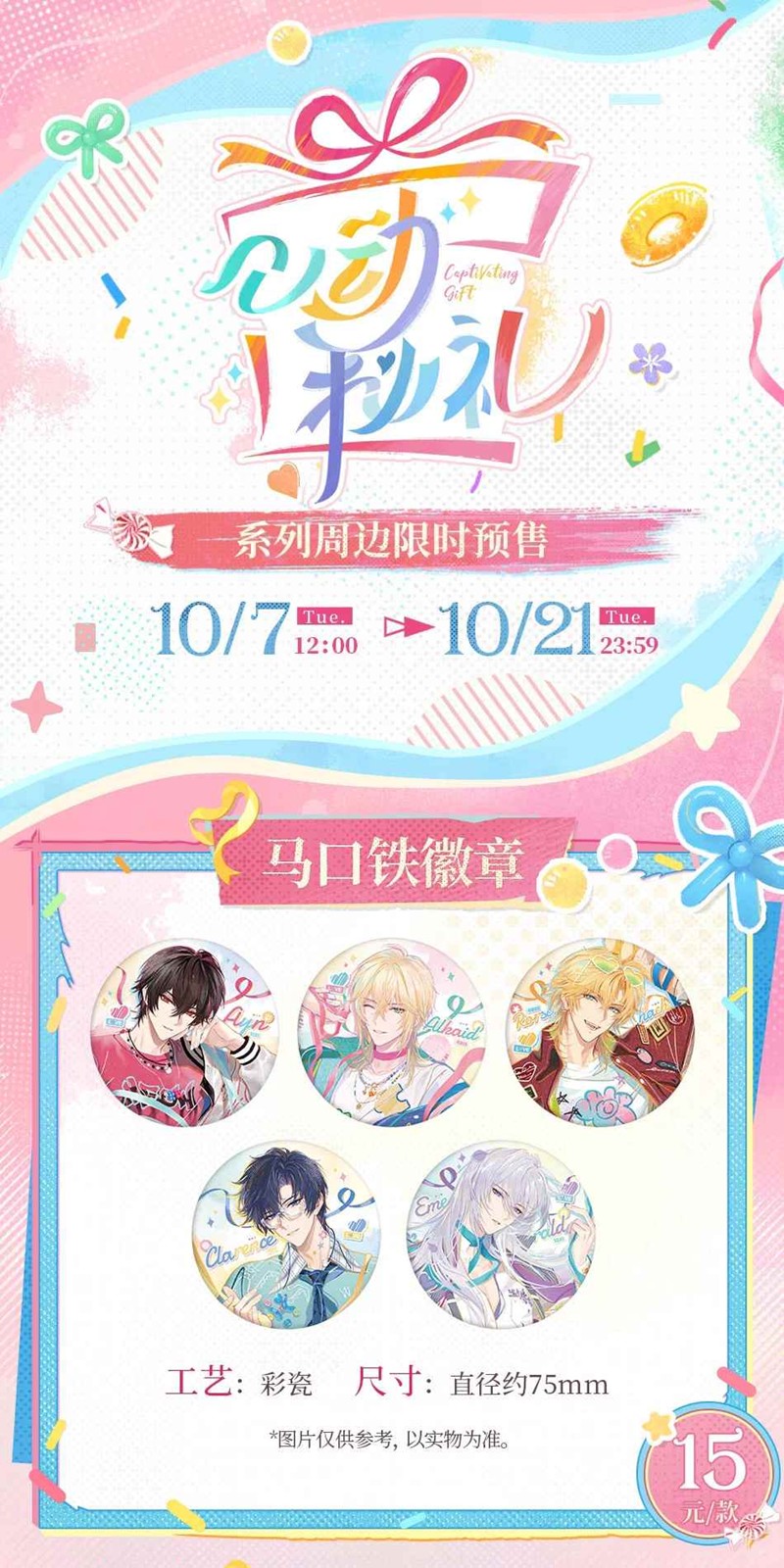 >「心动秘礼」系列:徽章、拍立得、斜插立牌、印象卡、花环门挂、无边色纸、冰格、磁吸冰箱灯、徽章保护套