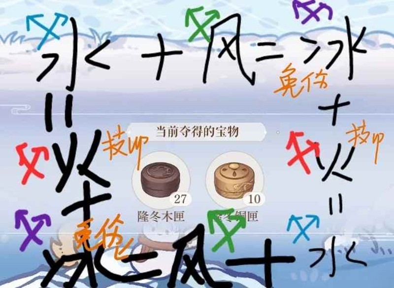 水+风变冰。冰+火变水。