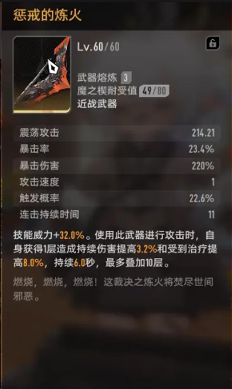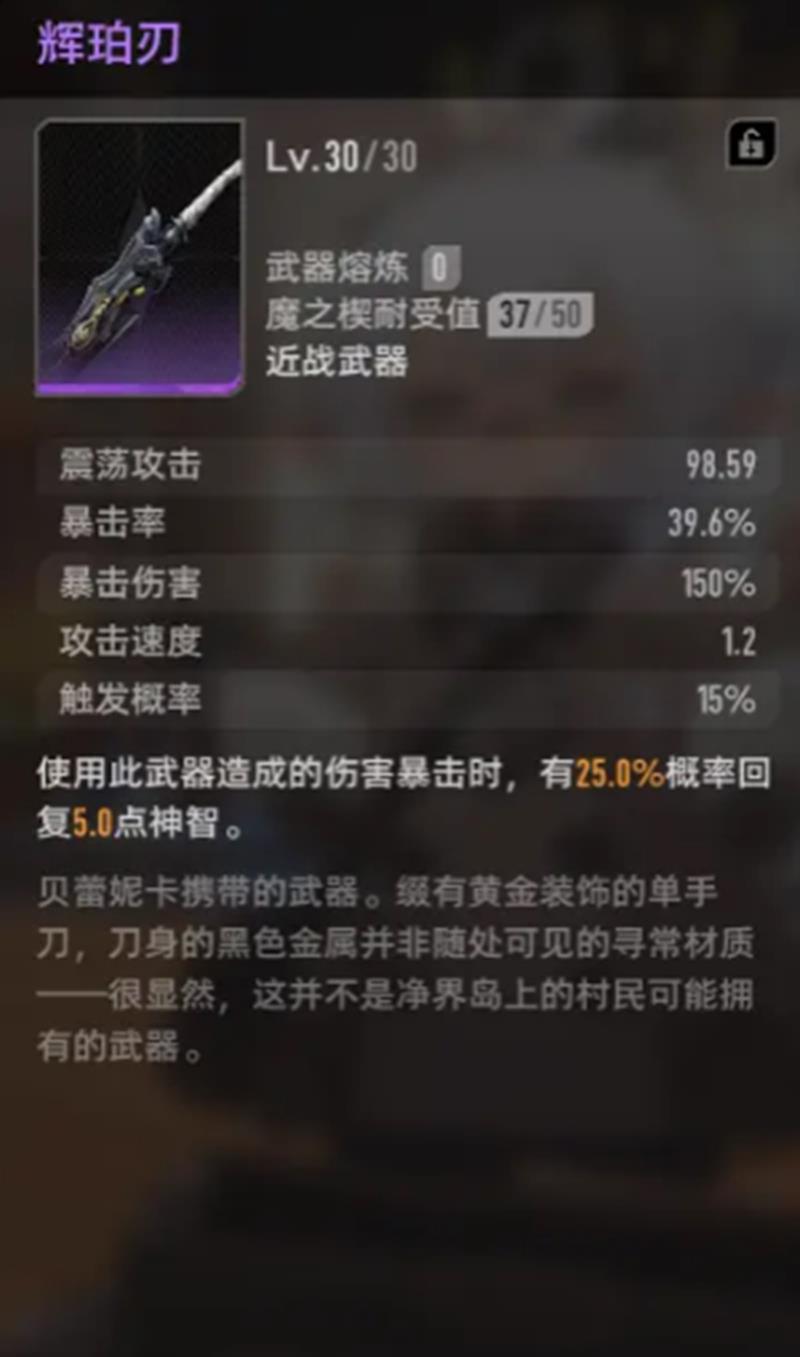 与之相比,辉珀刃作为新手流程即可获取的武器,实用性更为稳定。它不依赖任何异常机制,在暴击时有机会提升神智值,对能量紧缺的前期阶段帮助显著。而惩戒的炼火则可通过刷本材料铸造,获取门槛低且能有效支撑中期过渡。这两把武器虽无爆发性表现,但在伊瑟的整体成长曲线中更符合正常养成节奏。