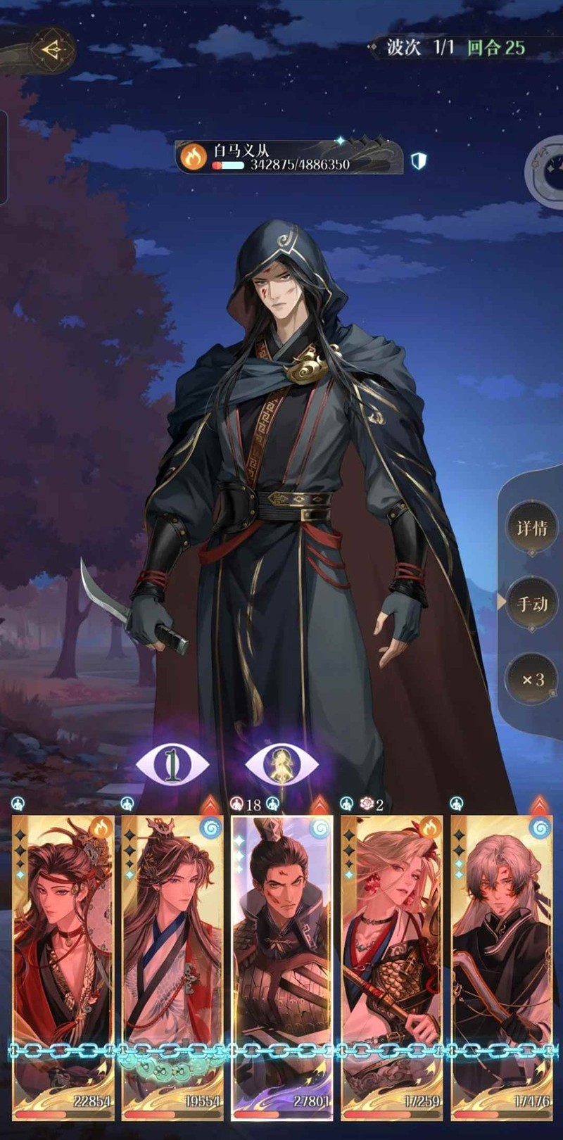 第六回合开始就是2345的循环,只要王粲大招回血能给大家尽量回满,那生存就没有问题
