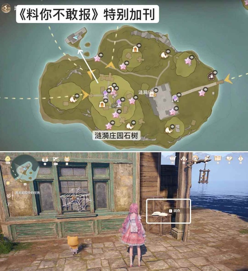 5.《料你不敢报》特别加刊:涟漪之窖石树左上角的车站,可以从【木桶小居】飞花过去,在站台边绿色木屋旁箱子上。
