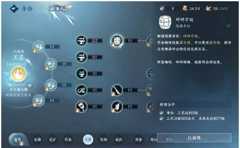 1.前置:解锁身份·工艺隐藏身份:砰砰学徒,学会趣味技能“霹雳桶”
