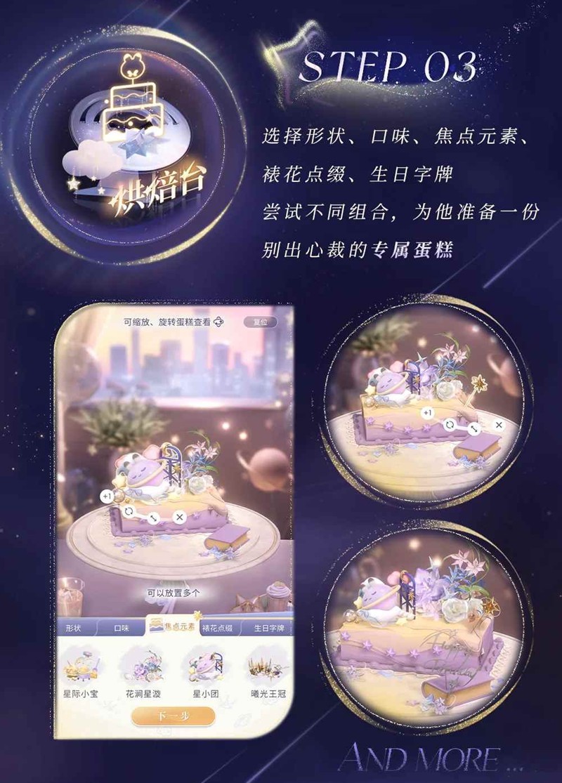 生日当天,将精心筹备的「生日蛋糕」与「祝福贺卡」送到他手中,开启他的「生日祝福互动剧情」。
