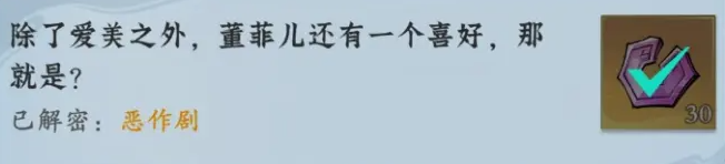问剑长生神念禁制董菲儿的友情问题答案分别是粉色头发、师尊是明净、喜欢的丹药是雪颜丹、玉简代号是纯白玉兔、另一个喜好是恶作剧。
