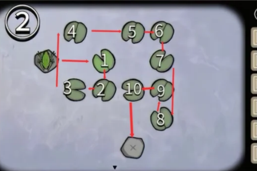 锈湖天堂岛第二灾蛙灾首先需要点击图中的青蛙,然后依次按照顺序来点击荷叶;以下是关于绣湖天堂岛第二灾蛙灾的通关方法流程步骤内容详情!