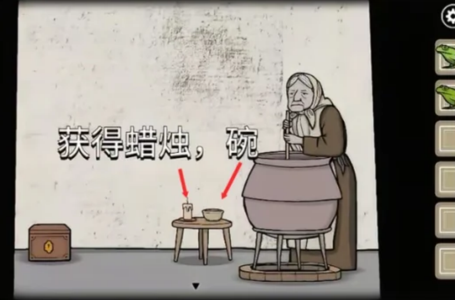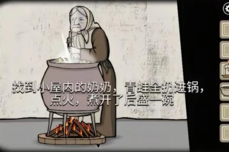 16、找到小屋内的奶奶,青蛙全扔进锅,点火,煮开了后盛一碗