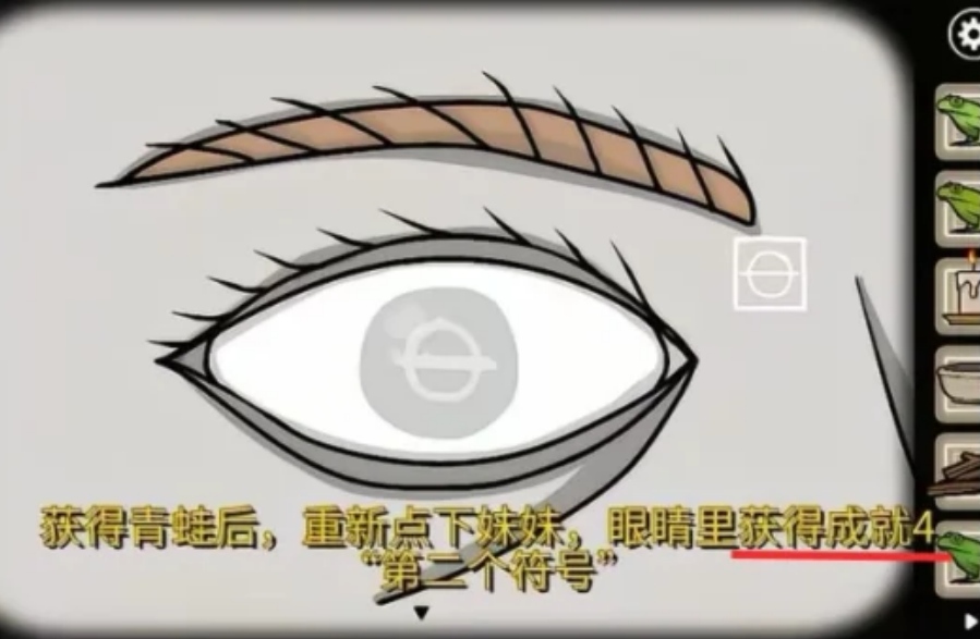 15、获得青蛙后重新点下妹妹,眼睛里获得成就4第二个符号