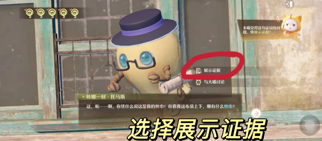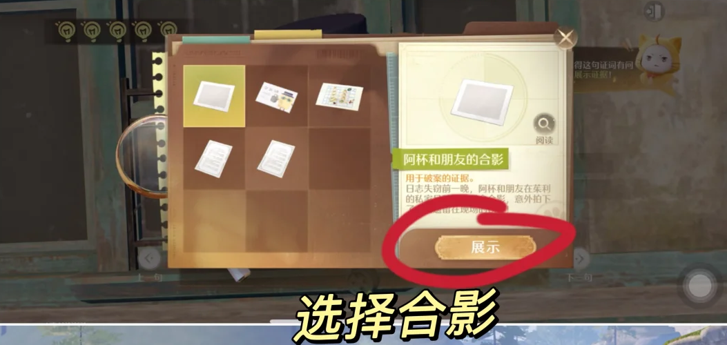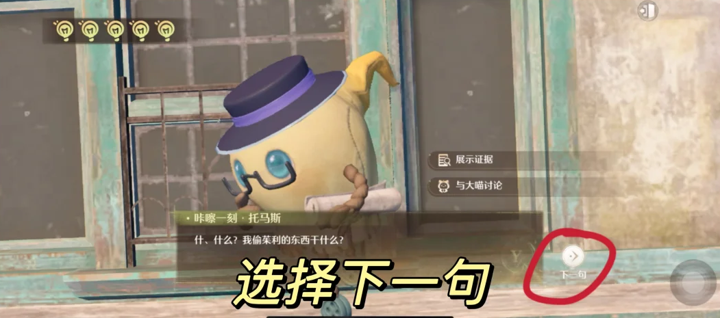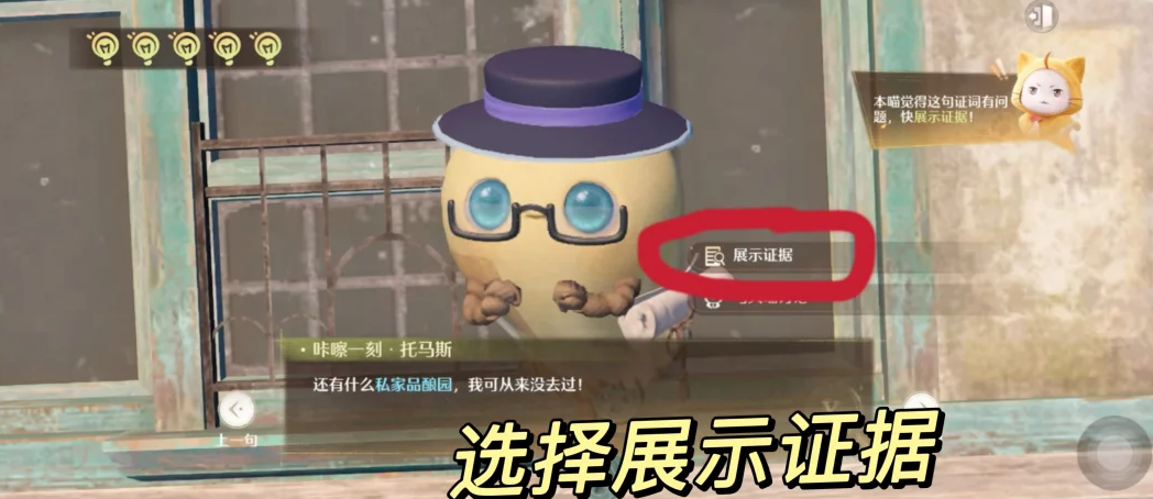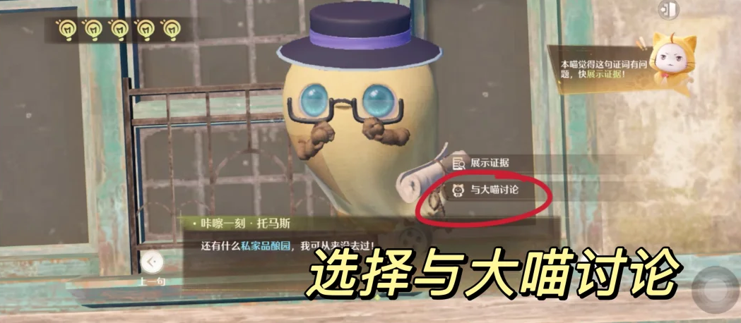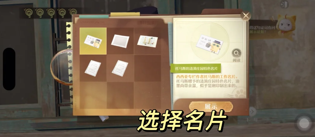 无限暖暖审讯托马斯证据中在与托马斯对话中首先选择下一句,然后与大喵讨论,选择展示证据,选择阿杯和朋友的合影并展示即可指证,继续选择展示证据后选择名片即可审讯成功。