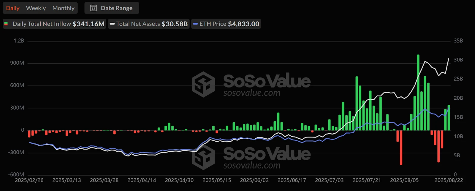 加入比特币储备阵营的新成员 KindlyMD 虽在 8 月 19 日购入 5765 枚 BTC,价值 6.4 亿美元,但整体与 ETH 财库的增持浪潮相比,显得相形见绌。