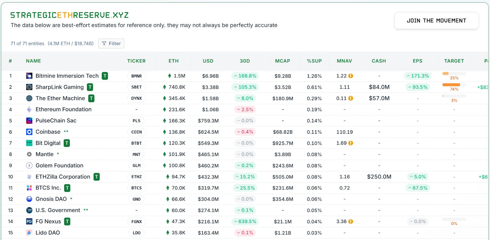 反观以太坊的持仓格局,则显得分散得多。BitMine 董事长 Tom Lee 的个人股份远不及 Saylor 的绝对话语权。BitMine 随后又相继获得 PayPal 联合创始人、硅谷风投大神 Peter Thiel 以及“木头姐”、“女版巴菲特” Cathie Wood 旗下 Ark Investment 的注资,前者拿下了 Bitmine 9.1% 的股份,后者则认购了约 477 万股 BitMine 股票。同时,SBET、ETHZ、GAME 等公司也在不断加仓,令以太坊的资本叙事逐渐呈现制度化、分散化的色彩。