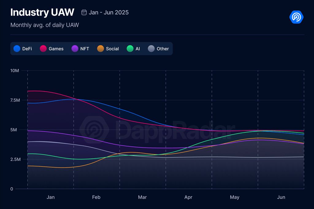 2025年DApp的类型与日均钱包活跃数(dUAW)