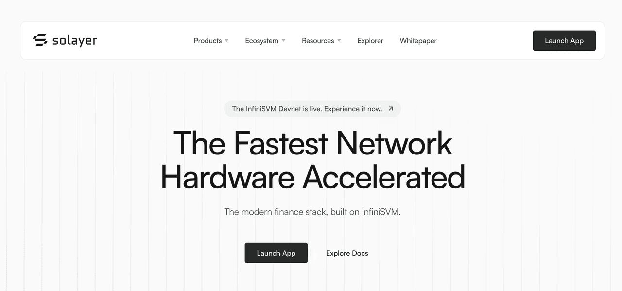 Solayer已成为Solana上领先的再质押协议,在主网上线前成功筹集了1.55 亿美元的存款,并在初始阶段于45 分钟内达到了早期存款上限。该协议已公布了其2025 年的宏大路线图,引入了革命性的Solayer InfiniSVM,这是一个硬体加速的SVM 区块链,承诺透过无限可扩展的多执行丛集架构实现100 Gbps 的效能。
