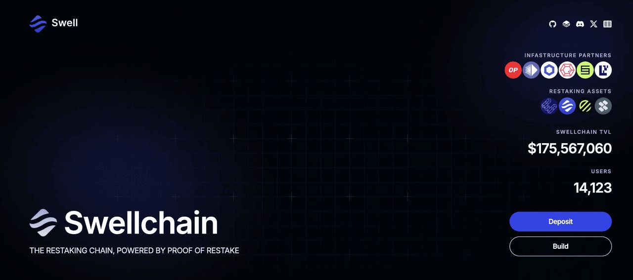 Swell Network已成为最大的以太坊再质押协议之一,其产品总锁定价值(TVL)超过18 亿美元,用户数量超过167,000 名。该协议同时运营传统的再质押服务和Swellchain,后者是首个由再质押提供动力的Layer 2 网络,代表着专为流动性再质押操作设计的全新区块链基础设施类别。