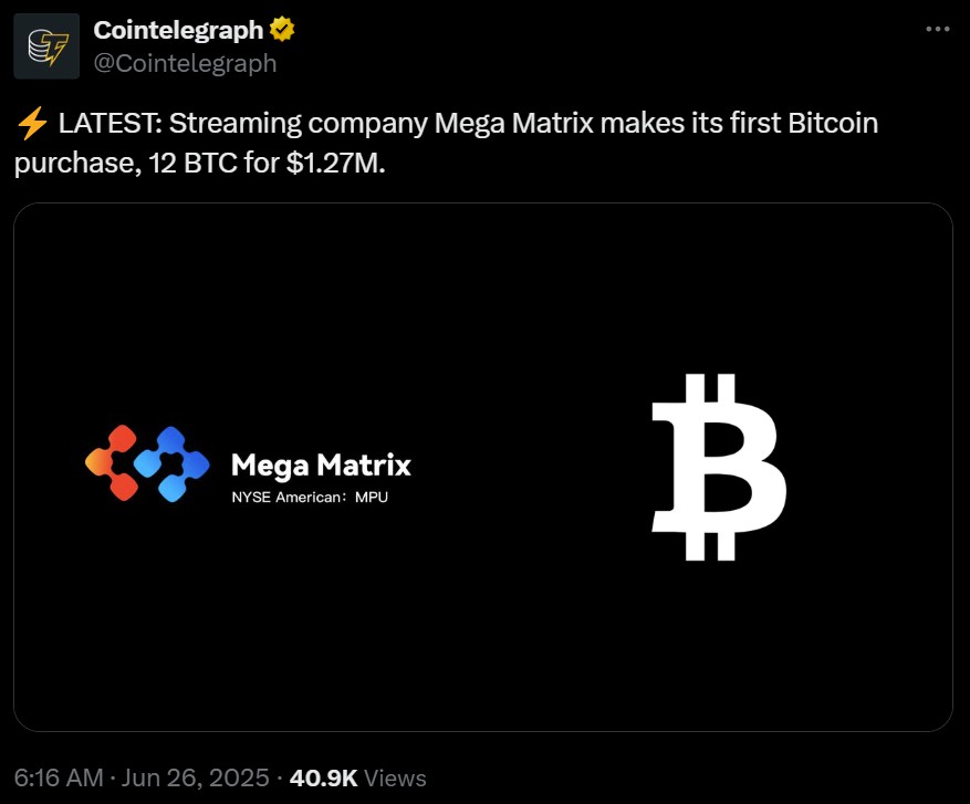 即便如此,Mega Matrix在将数字资产作为资产负债表策略方面并非独行者。