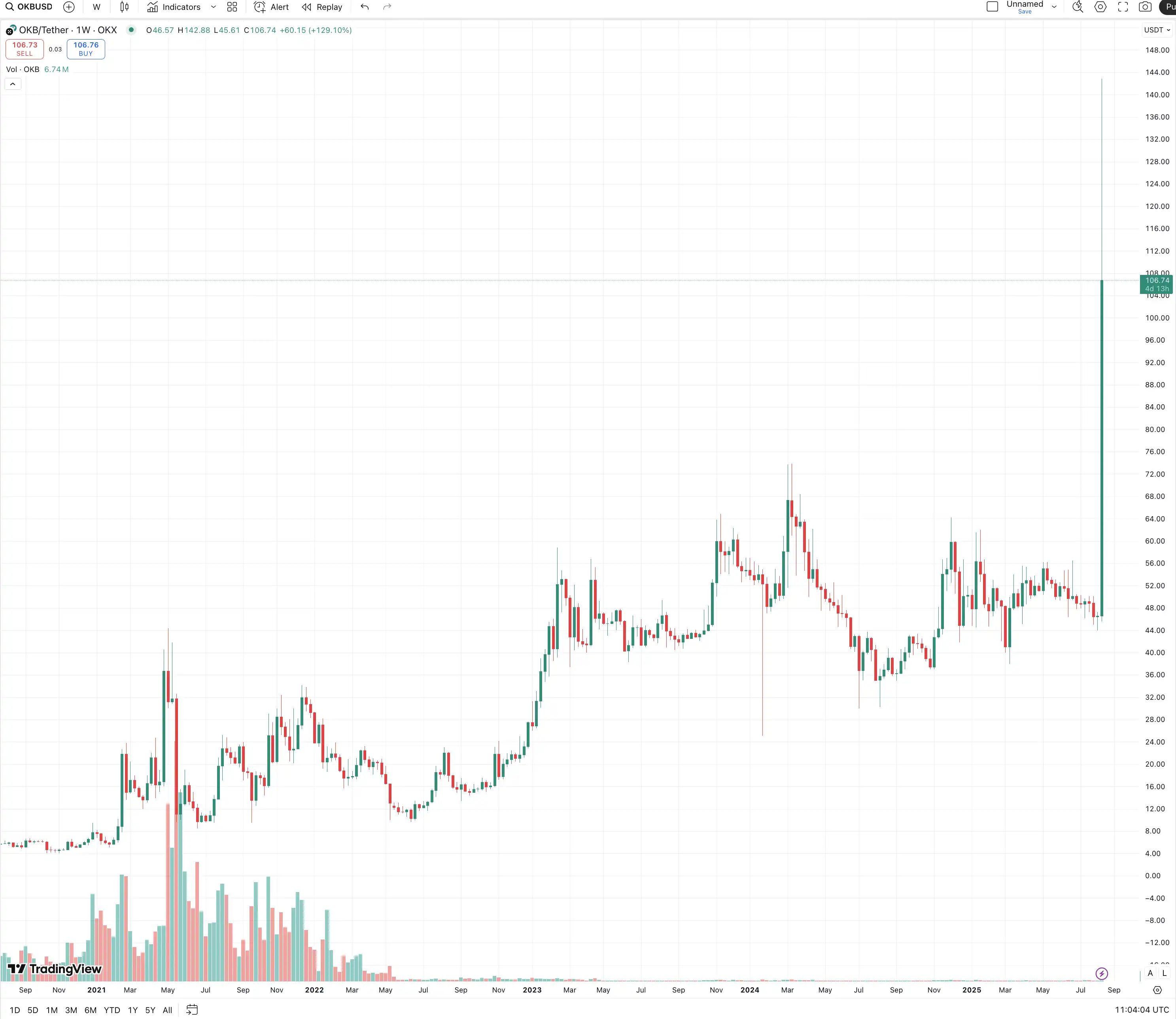从2023 年到2025 年来的两年,OKB 从$28 上涨至$110。