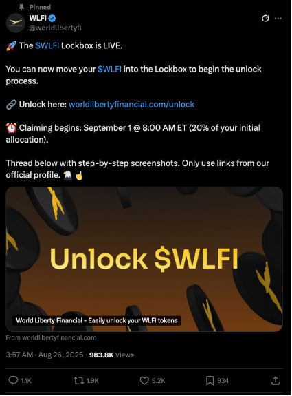 Image Credit:World Liberty Financial Official X (Formerly Twitter)