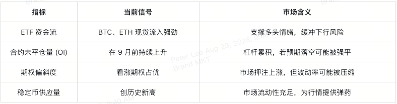 情景分析给了我们可能的路径,但真正决定市场如何走的,是资金和仓位的分布。进入 9 月,加密市场整体氛围偏乐观,但依然脆弱。