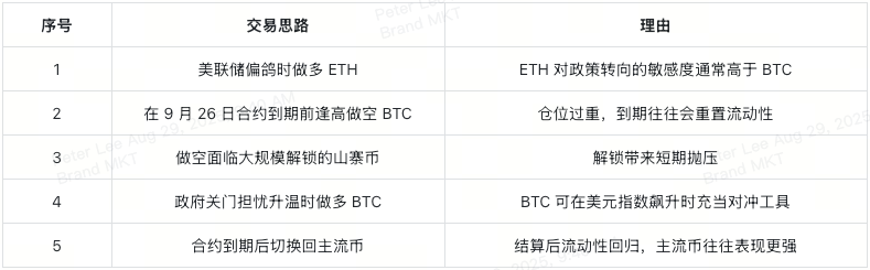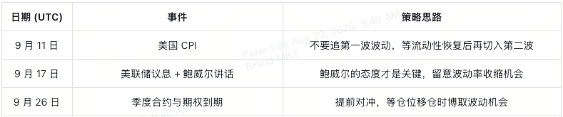 最后一个重磅催化剂是9 月 26 日的季度交割。Deribit、Binance、OKX 将在08:00 UTC完成季度合约结算,CME 的比特币和以太坊合约将在当天16:00 UTC交割。