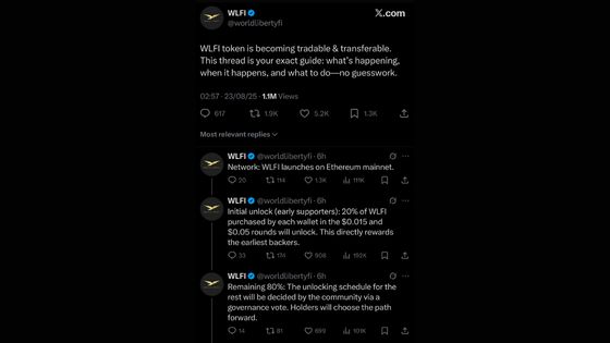 UTC 时间9 月1 日12:00,现货市场将正式开放,首批20% 的预售代币将透过经审核的Lockbox 系统解锁。在早期轮次购买WLFI 的持有者可以领取其分配,预计Uniswap 等去中心化交易所将首先上市,随后是BingX 等中心化交易所。发行时的流动性可能较低,这可能会放大双向的价格波动。