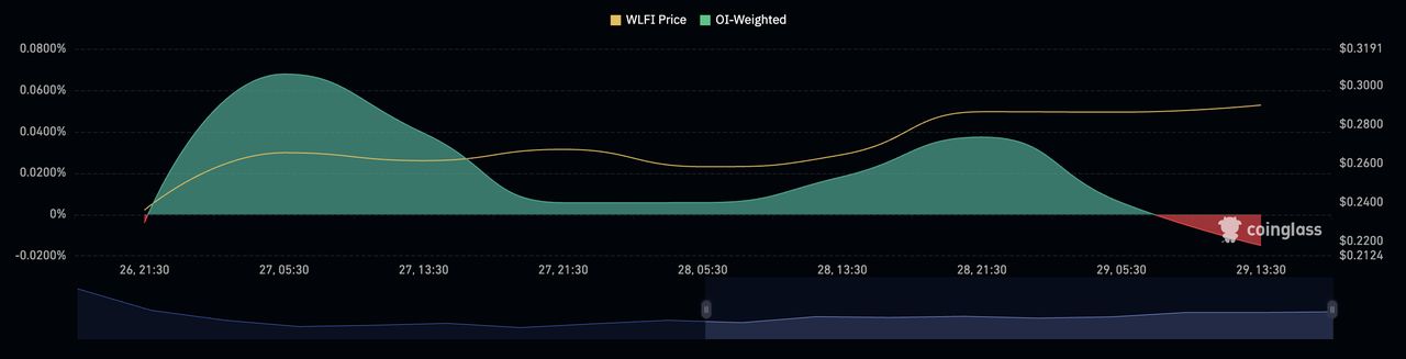 WLFI OI 加权资金费率波动凸显市场情绪复杂| 来源:CoinGlass