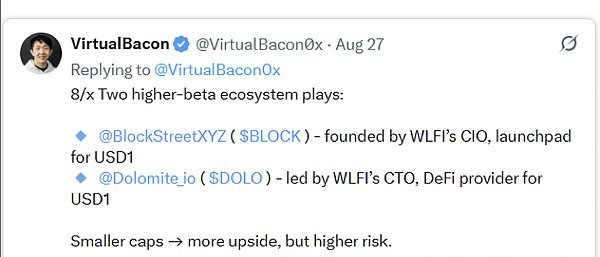 Blockstreet (BLOCK):被吹捧为USD1跨链发行的启动平台。其创始人已出任ALT5 Sigma首席投资官,将其与WLFI的国债策略直接绑定。